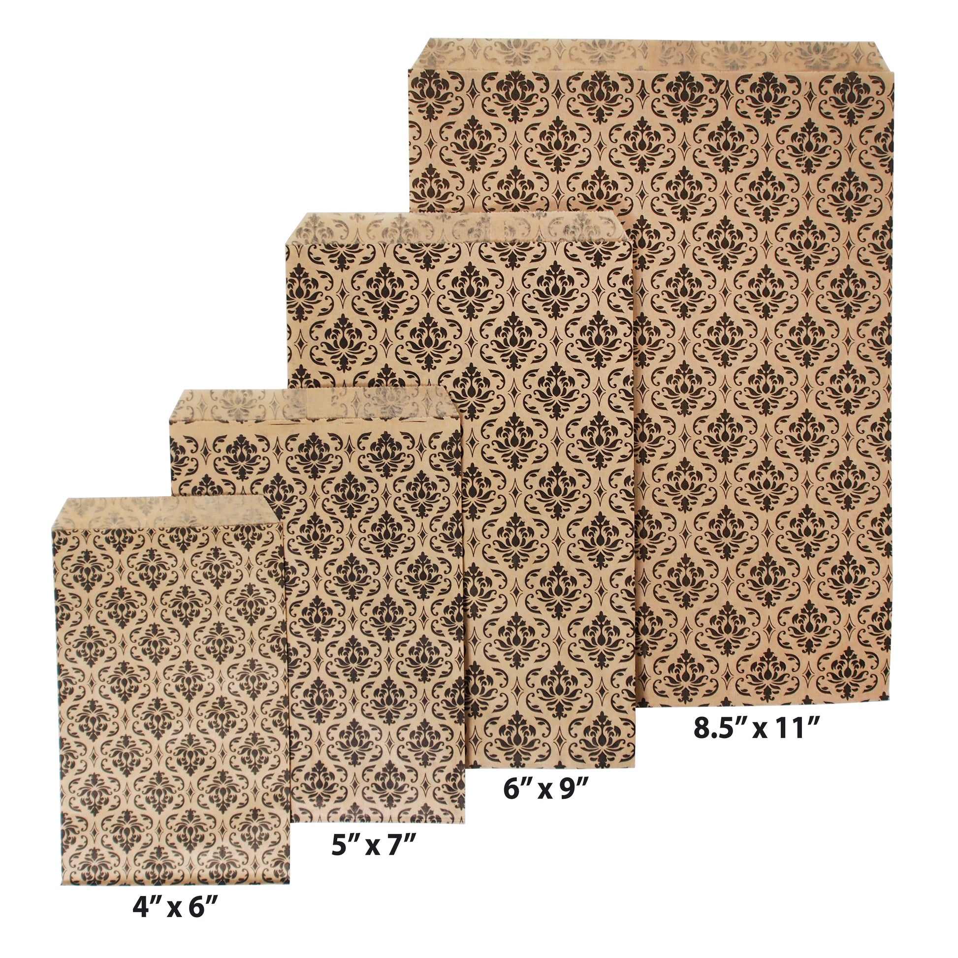 Damask Pattern Paper Bags - 100Bags/Pack- Multiple sizes available
