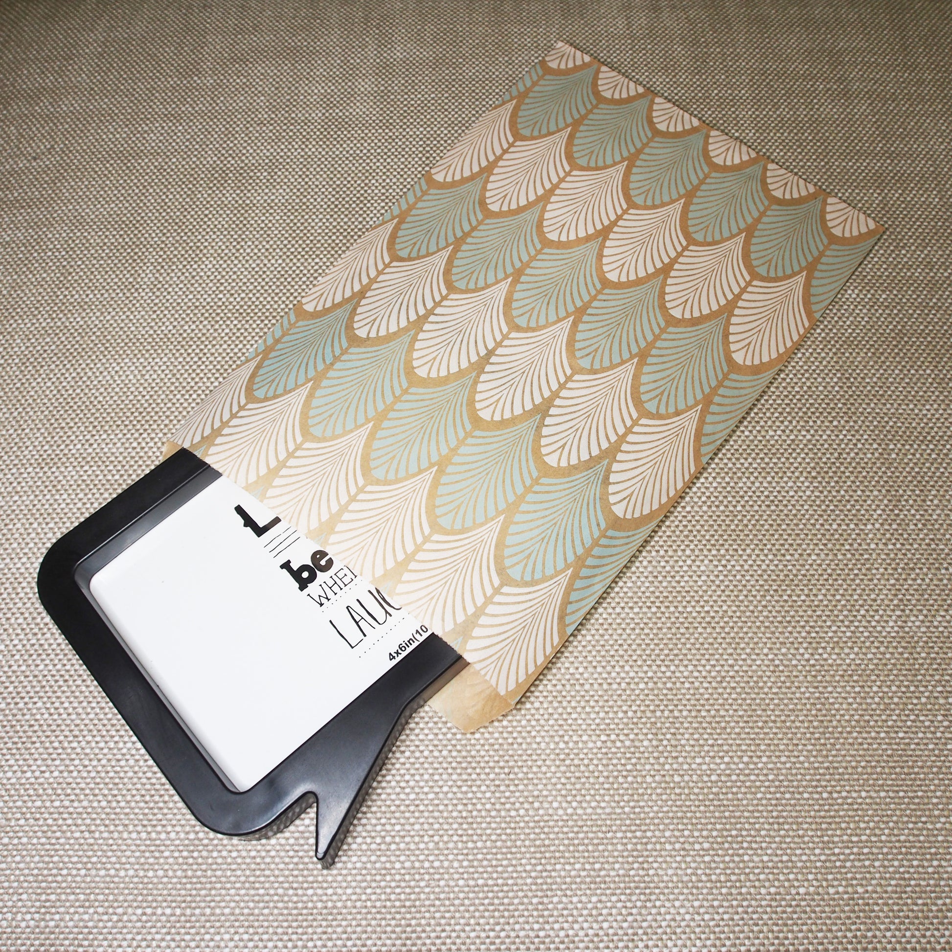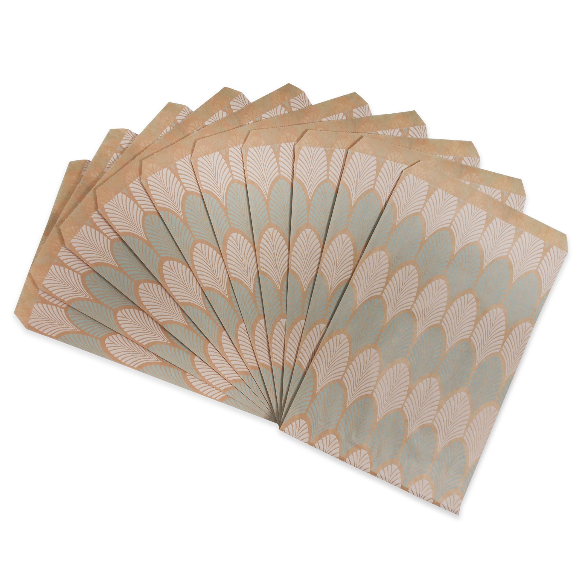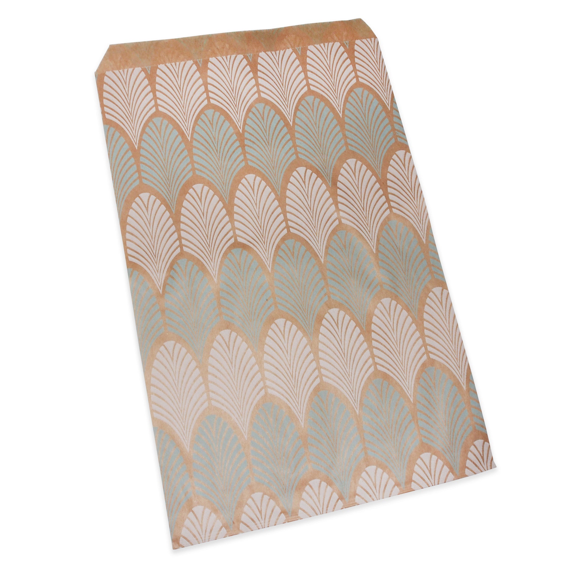 Baby-Blue Leaf Pattern on Natural Kraft Flat Bags - Decorative Flat Paper Gift Bags