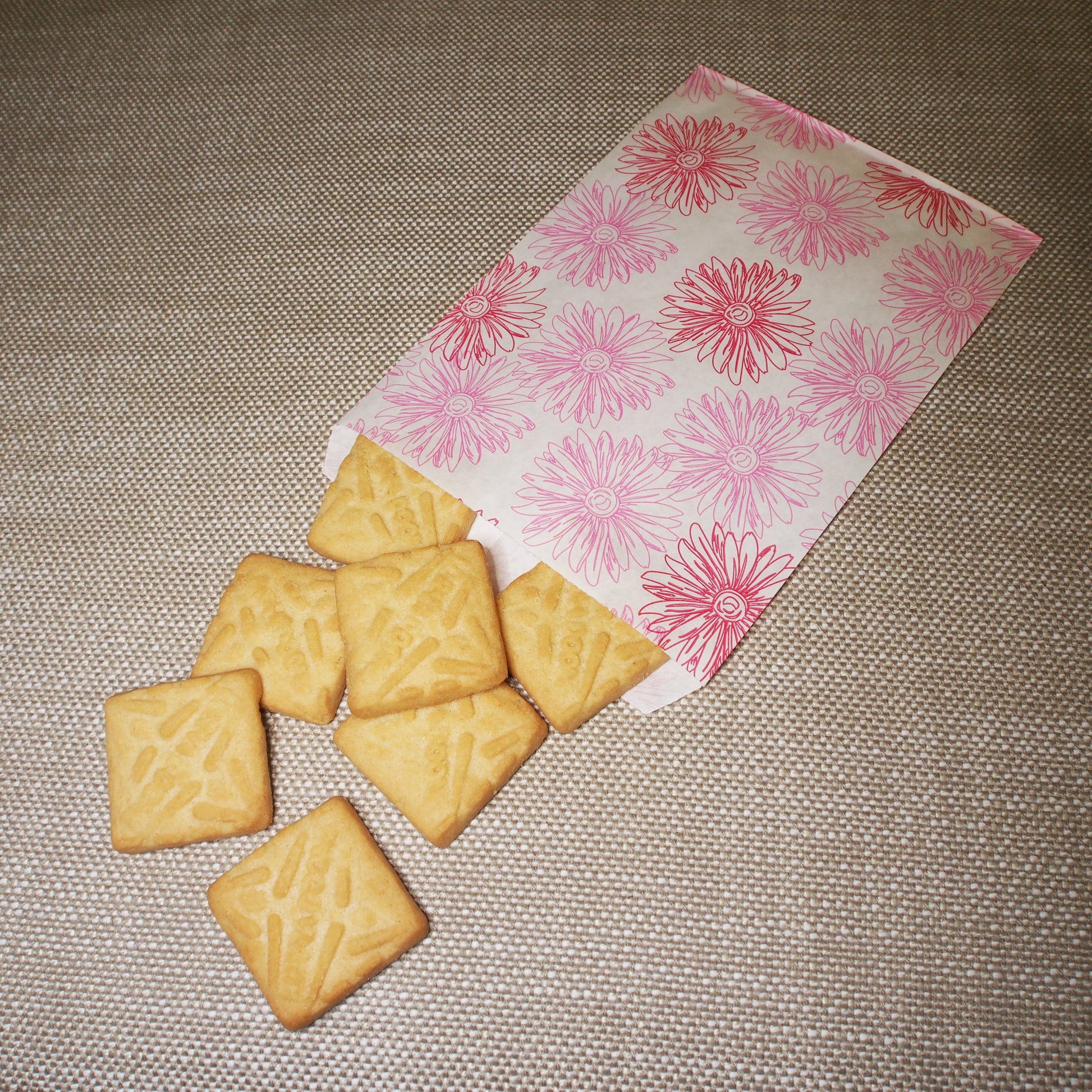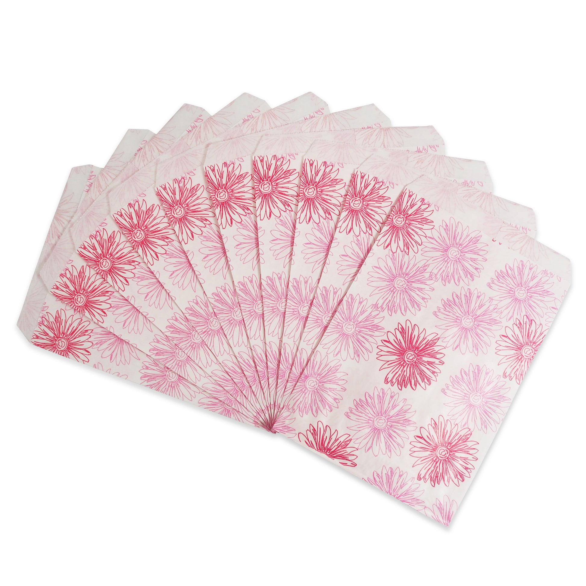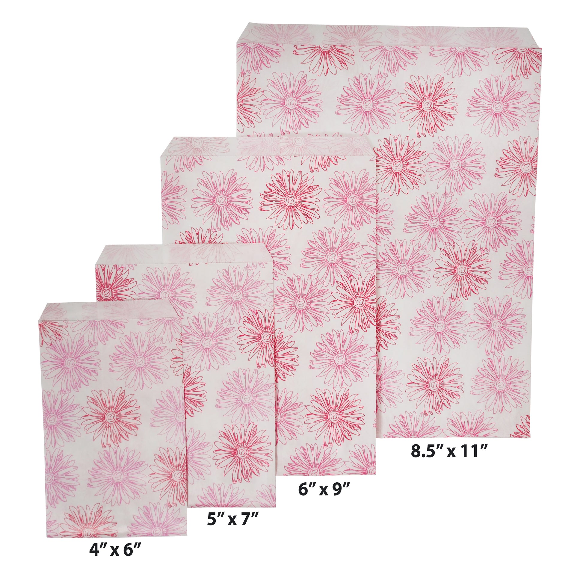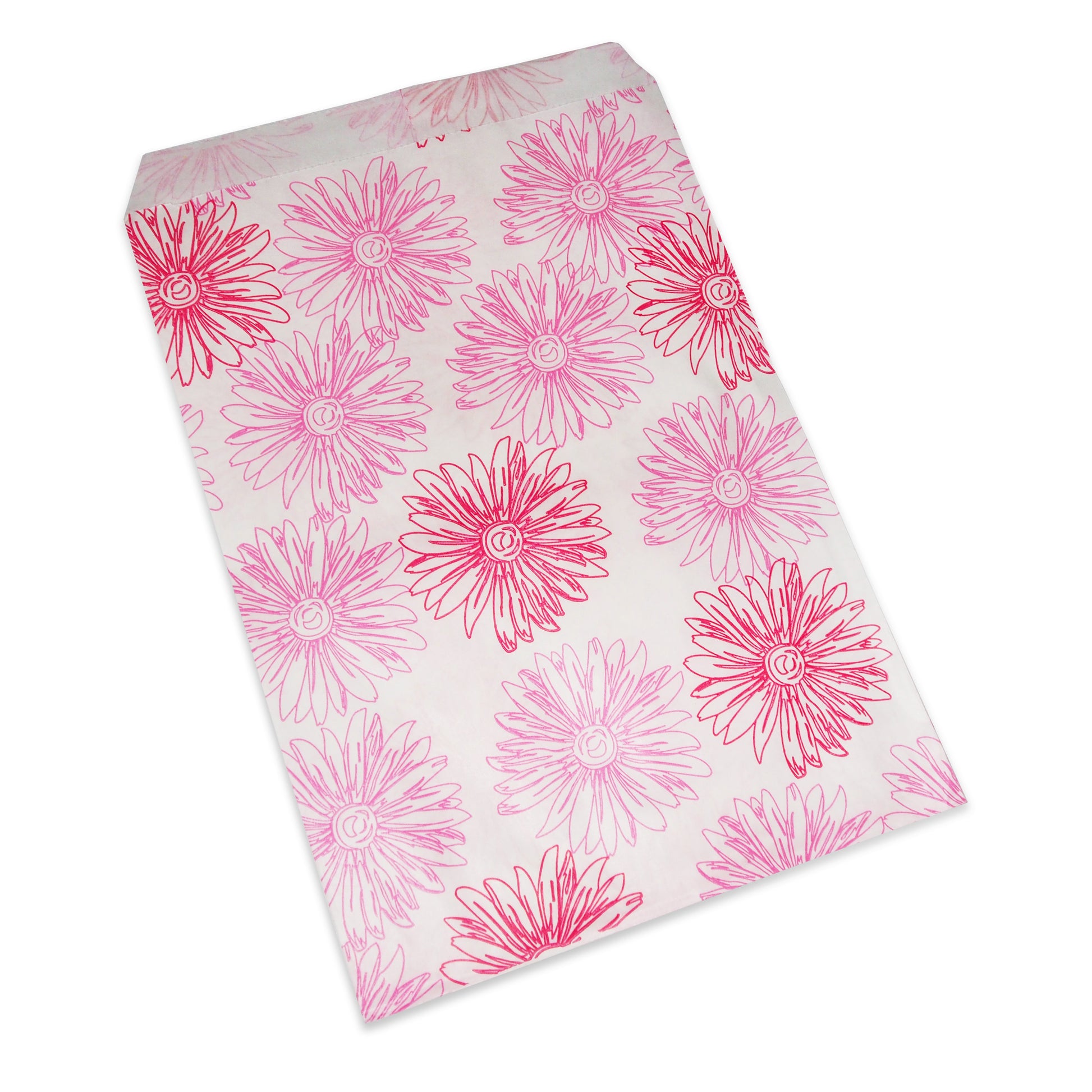 Pink Flower Pattern Paper Bags - 100Bags/Pack - multiple sizes available